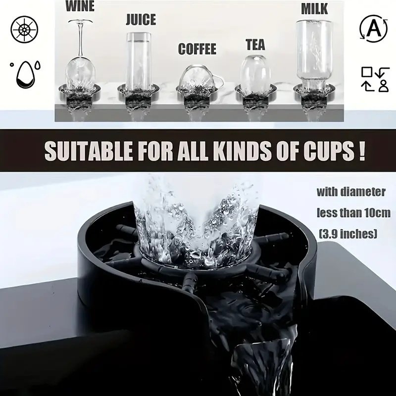 2-in-1 innovative design: Combines a powerful cup washer for sink with a 360° pull-out nozzle sprayer; perfect for rinsing drinkware, cleaning dishes, and tackling tough kitchen tasks with ease.Built to last: Made from high-quality 304 stainless steel; lasts 3–5 times longer than plastic alternatives and resists wear, rust, and damage.Splash-free cleaning: Titled base drains water efficiently, while taller sidewalls prevent splashing; rotating spray cleans in seconds; an essential glass rinser for kitchen sink.Easy operation: Press drinkware onto the plate for a thorough clean; use the 120 cm retractable hose for rinsing dishes or the sink; an ideal cup rinser sink attachment for all kitchens.Hassle-free setup: Installs in 20–30 minutes with included parts and instructions; upgrade your sink with this practical kitchen sink accessory.