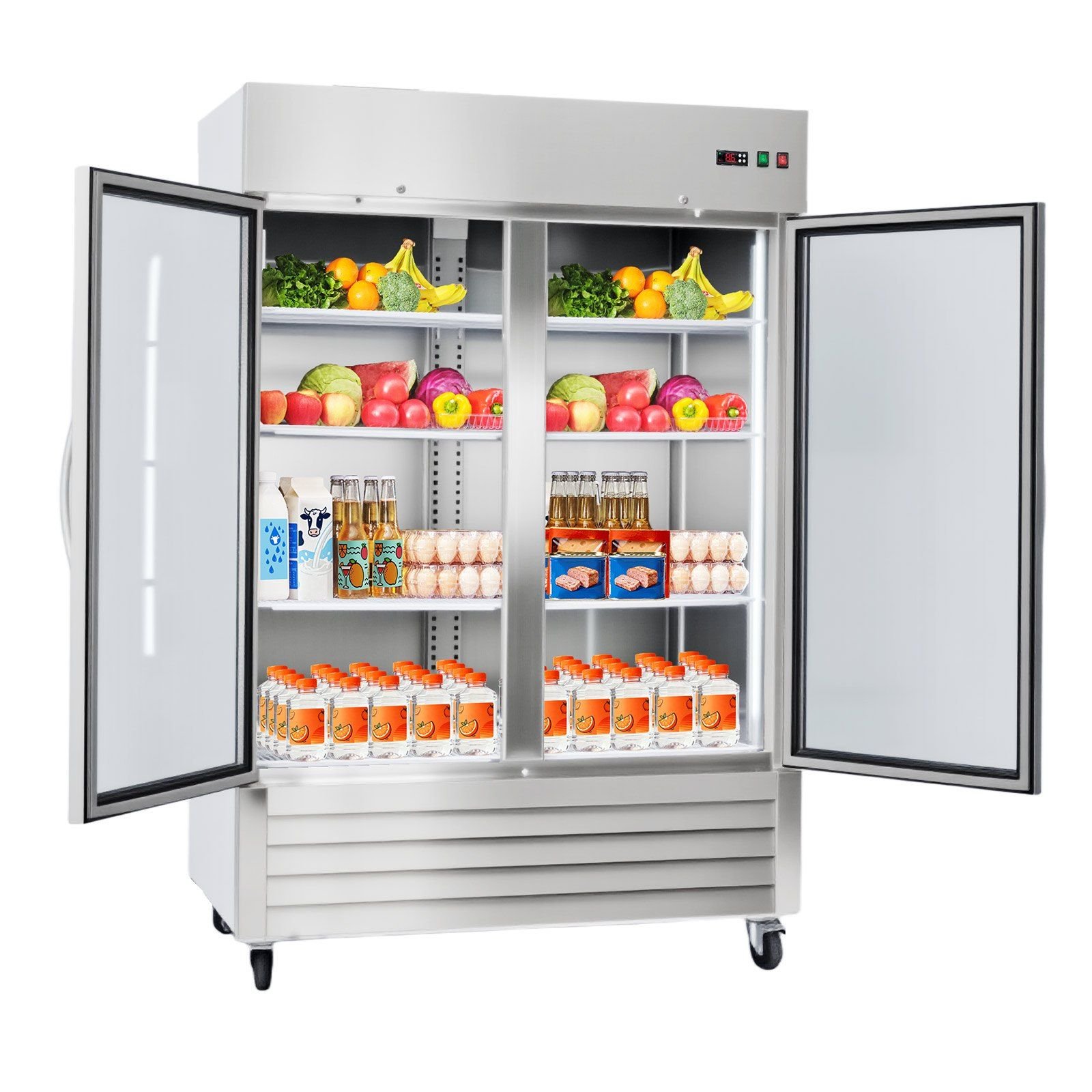 3.Large Storage Capacity: Designed for bulk food storage, this commercial reach-in refrigerator offers a 44 Cu.Ft capacity with 8 adjustable shelves. Each layer supports 66 lbs (30 kg) heavy loads, keeping ingredients organized and easy to access
