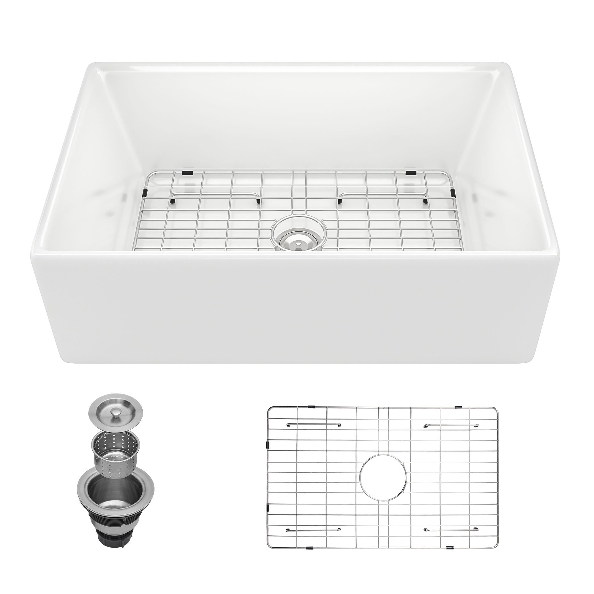 Package include: a ceramic kitchen sink; a sink bottom grid;a basket strainer;mounting hardware;installation and operation instruction.