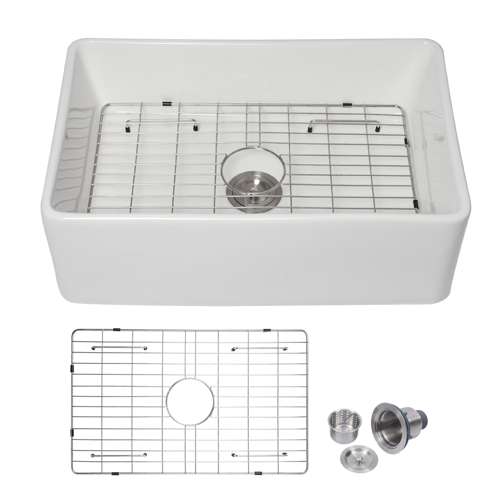 Package include: a ceramic kitchen sink; a sink bottom grid;a basket strainer;mounting hardware;installation and operation instruction.