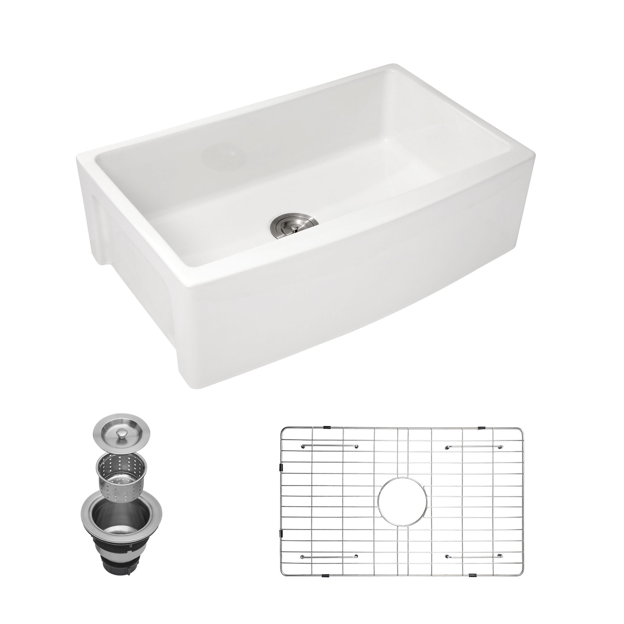 Home > White Undermount Farmhuose Ceramic Kitchen Sink, Deep Apron Single Bowl Farm Sink with Bottom Grid