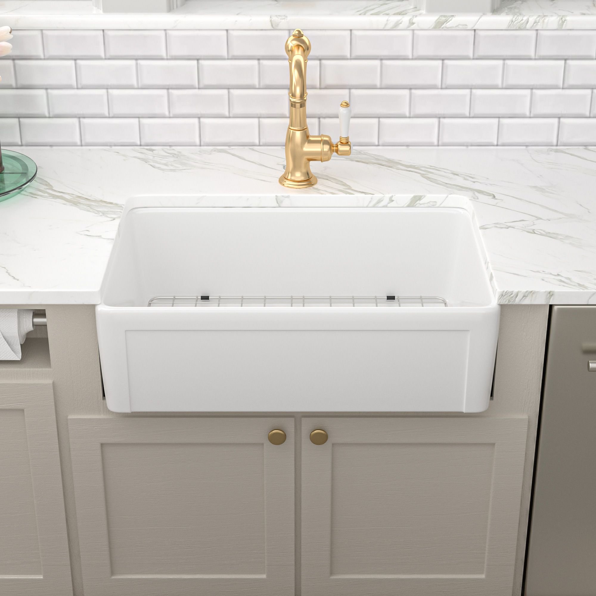 White Undermount Farmhuose Ceramic Kitchen Sink, Deep Apron Single Bowl Farm Sink with Bottom Grid White Undermount Farmhuose Ceramic Kitchen Sink, Deep Apron Single Bowl Farm Sink with Bottom Grid White Undermount Farmhuose Ceramic Kitchen Sink, Deep Apron Single Bowl Farm Sink with Bottom Grid